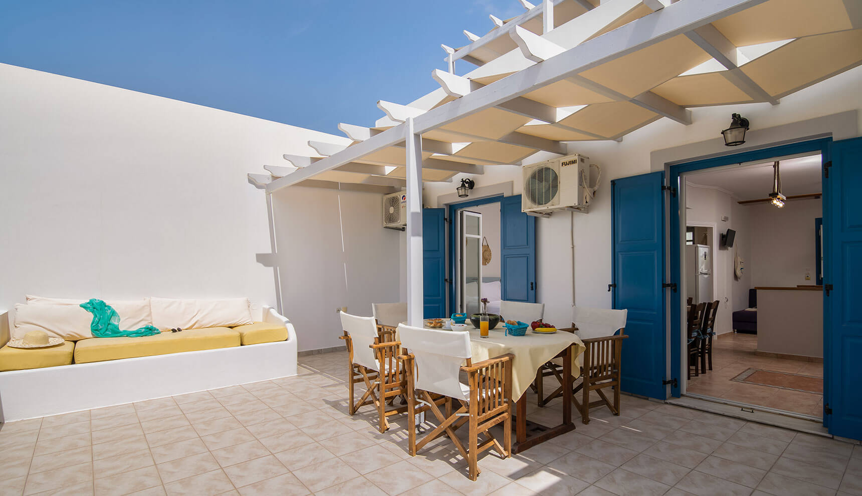 2-5 guests 79m2 3 bedroomsThe Maisonette includes a comfortable sitting room, a fully equipped kitchen with a refrigerator, essential utensils, cooktop, hood, coffee machine, and mini bar. The spacious private WC-bathroom comes with a shower panel, and there’s an additional shower on the 1st floor. There is air conditioning in all rooms, along with amenities like an iron, hairdryer, safe-box, and complimentary natural hair and skin care products, slippers, bathrobes, and face & bath towels.